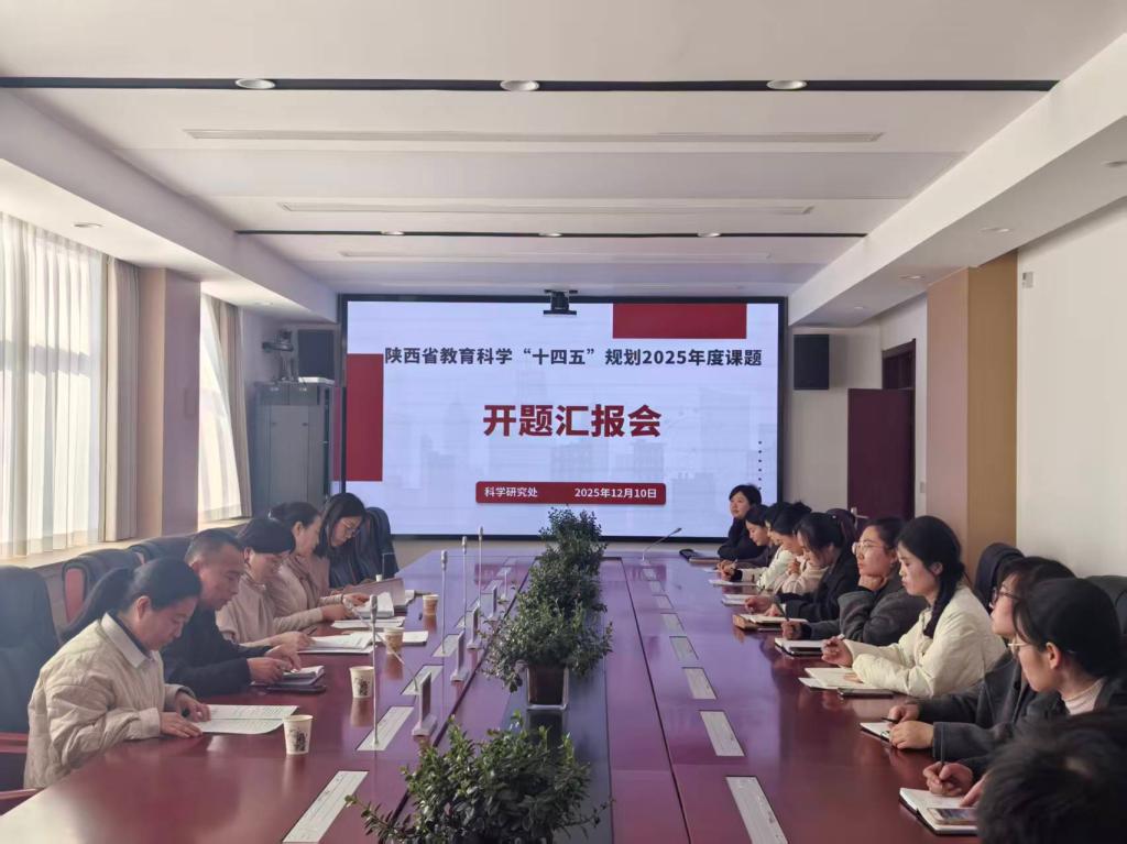 12月10日,我校陕西省教育科学“十四五”规划2025年度课题开题汇报会在行政楼5楼会议室举行。科研处处长蒋宝、项目管理科副科长赵蕊及各课题主持人参加会议,会议邀请陕西铁路工程职业技术学院科技处副处长何文敏教授、我校科学研究工作委员会委员刘丽宁教授、杨楠楠副教授组成评审组进行开题指导。